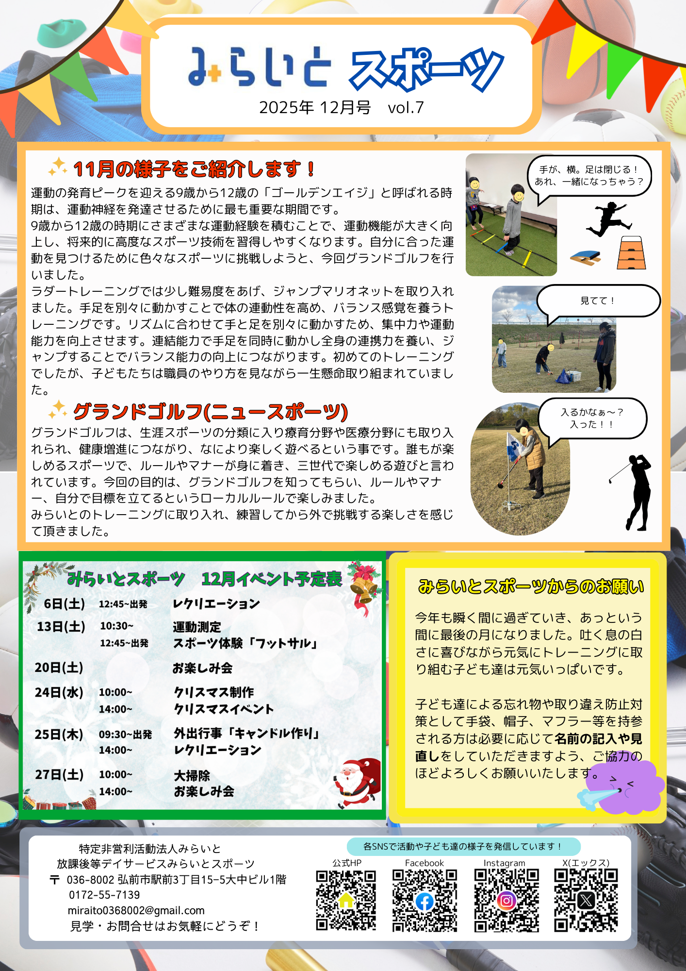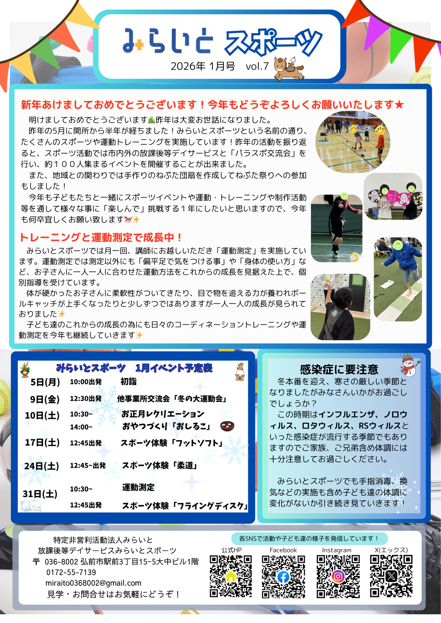 みらいとスポーツの取り組みや子ども達の元気な姿を公開しております