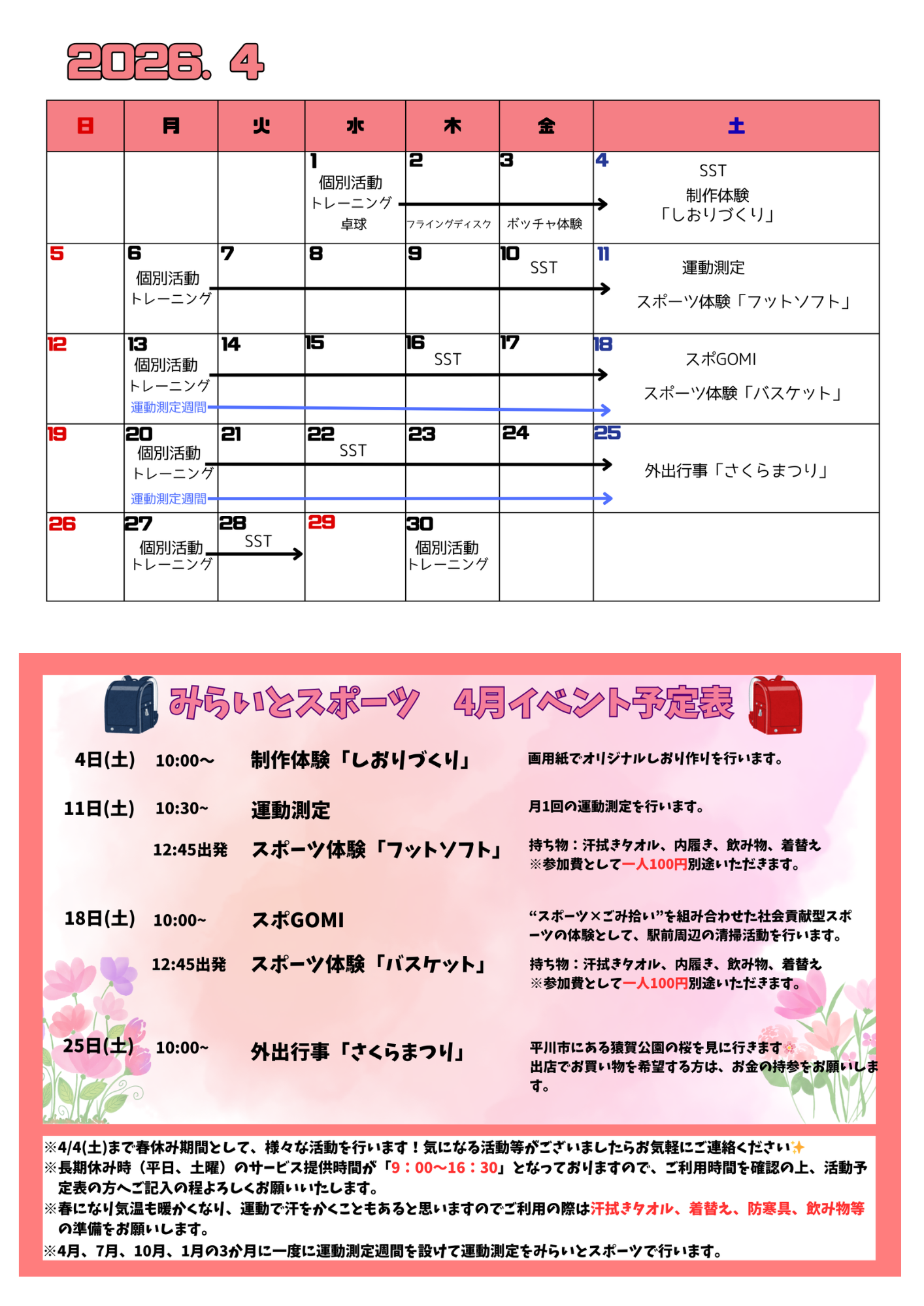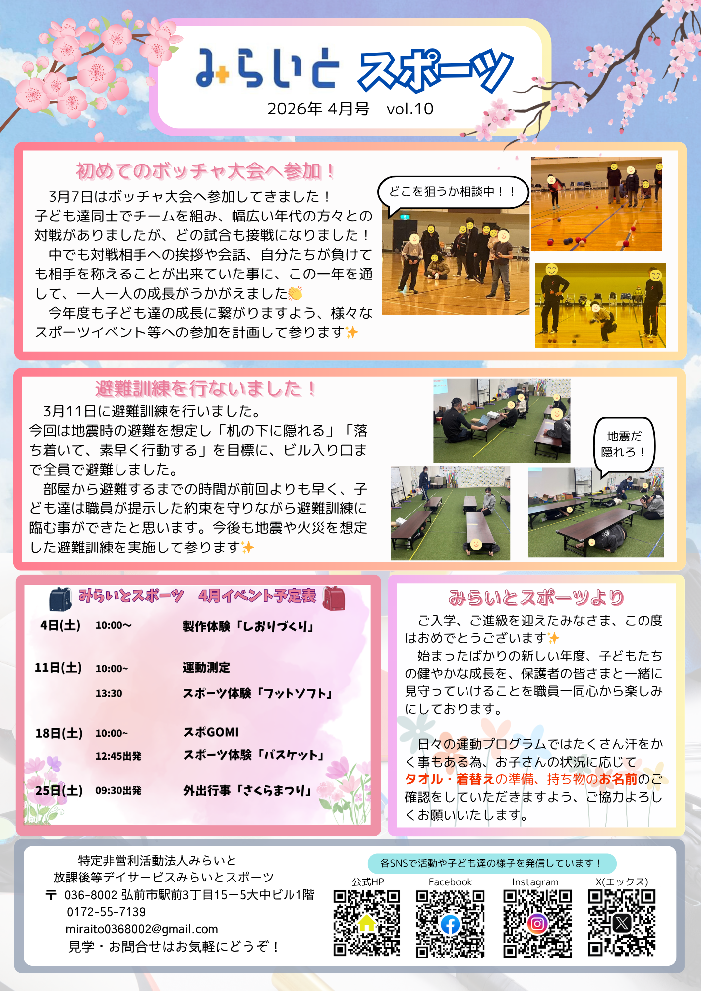 みらいとスポーツの取り組みや子ども達の元気な姿を公開しております