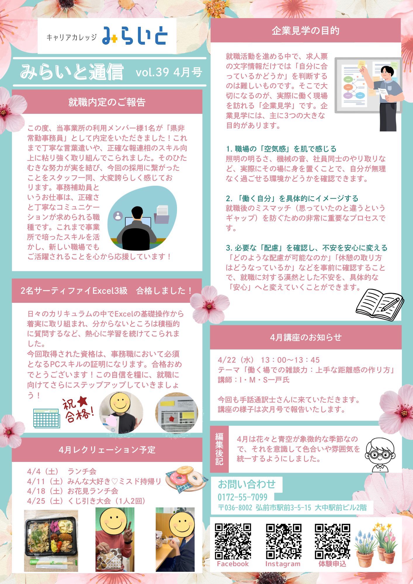 農園スタッフ・福祉事業所事務員 内定! |